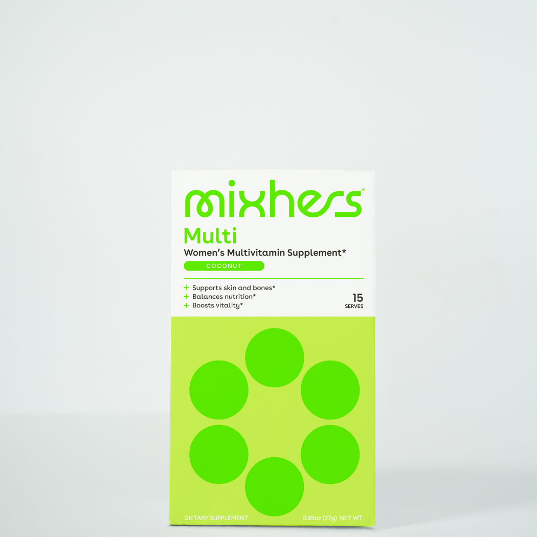 Mixhers Multi is an innovative liquid supplement to help women fill nutritional gaps in their diet. Your needs are different from men’s so we’ve curated each ingredient for optimal female performance. Taken in liquid form, Multi supports your body's ability to absorb the nutrients that boost your immunity and energy. Drink daily.